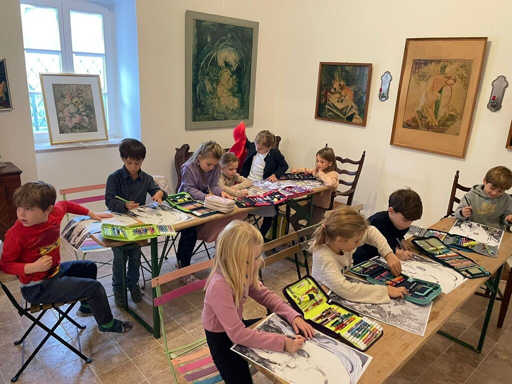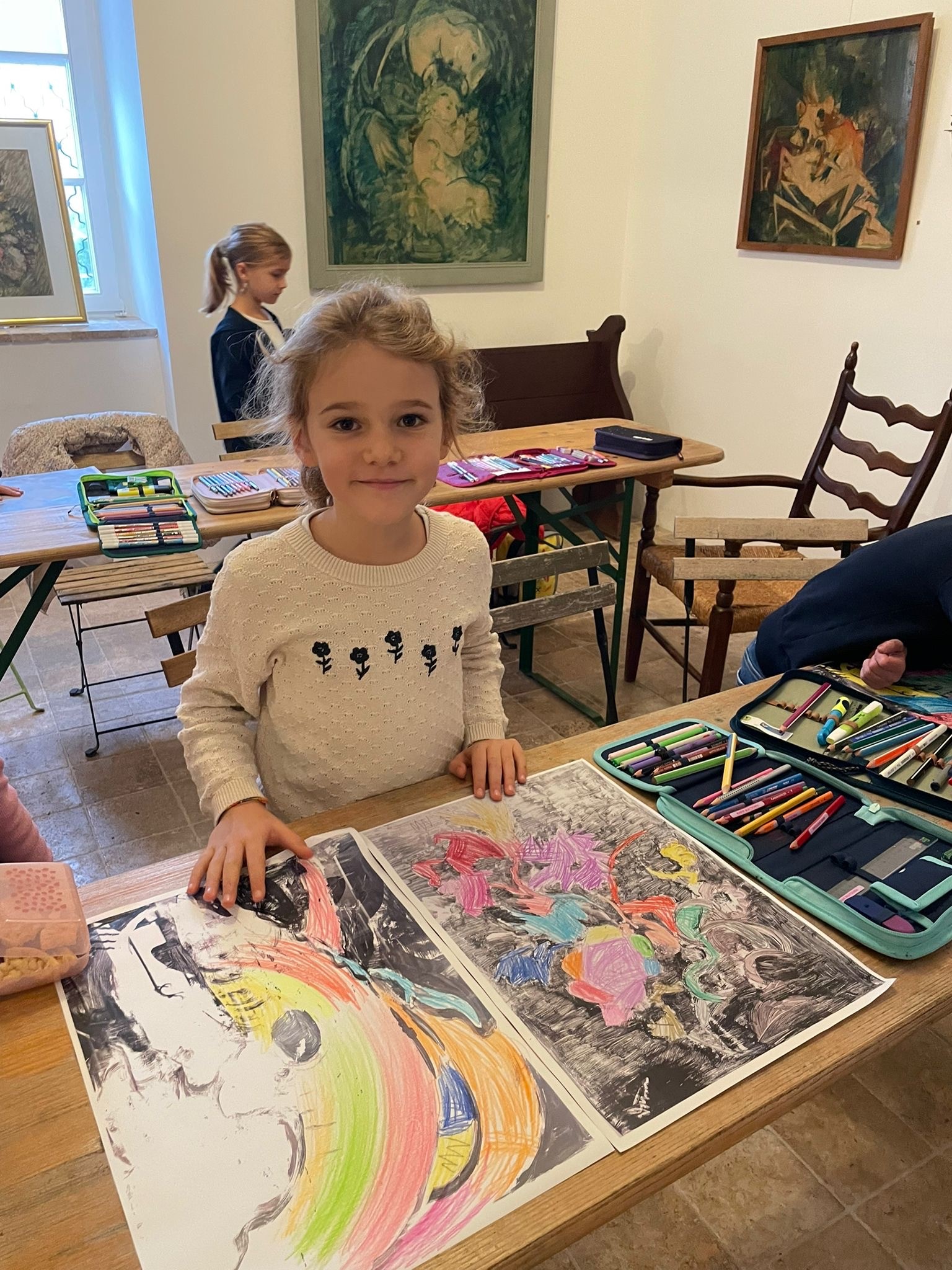 Abschließend durften sich die Kinder selbst einer künstlerichen Aufgabe widmen. Diese kreative Erfahrung soll Neugier wecken und die jungen Besucher/innen dazu anregen, Kunst als Quelle der Inspiration und des Lernens zu sehen.