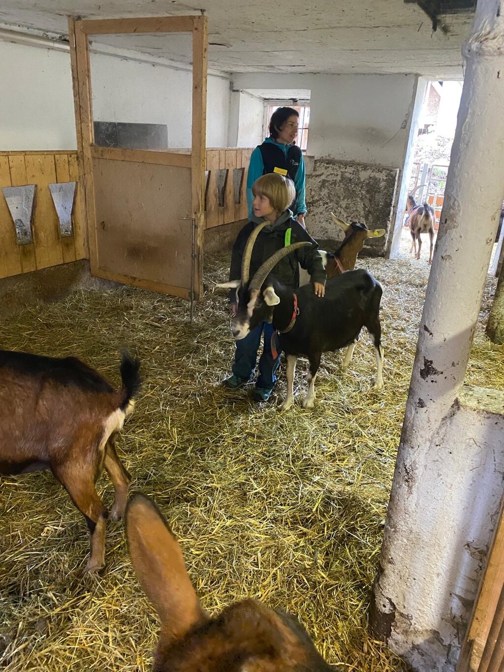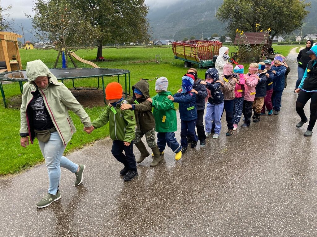 Neben Hasen, Hühnern und Schweinen gab es auch ein Wettrennen mit den Ziegen sowie eine Sinnesstation: Mit verbundenen Augen erkundeten die Kinder die Geräusche und Gerüche des Bauernhofs – eine ganz neue Erfahrung! Den krönenden Abschluss bildete das fröhliche Heuhüpfen im Stadl – ein Highlight, das sicher noch lange in Erinnerung bleibt.
